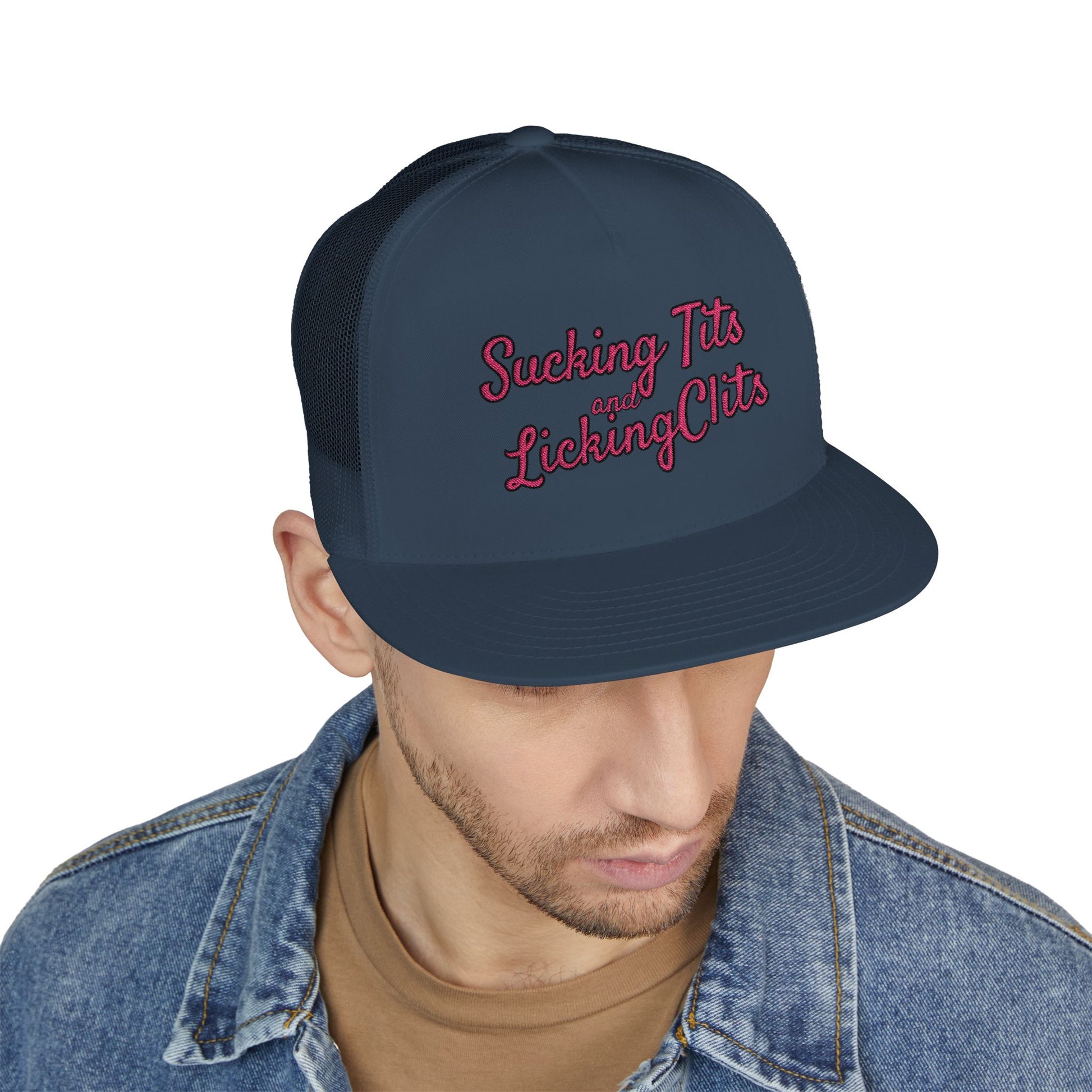 Sucking Ts and Licking Cs (Pink Thread) Panel Trucker Cap (Embroidery)